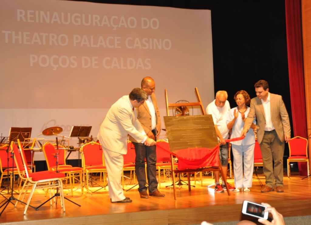 O Governo do Estado de Minas Gerais e a Companhia de Desenvolvimento Econômico de Minas Gerais (Codemig) entregaram à população o histórico Theatro Palace Casino de Poços de Caldas, completamente revitalizado. Após obras de reforma e restauro, o equipamento cultural foi reaberto em cerimônia realizada na última sexta-feira (30/12), em Poços de Caldas, no sul do estado. Participaram do evento o secretário de Estado de Governo, Odair Cunha, representando o governador Fernando Pimentel, e o presidente da Codemig, Marco Antônio Castello Branco, além de lideranças locais.